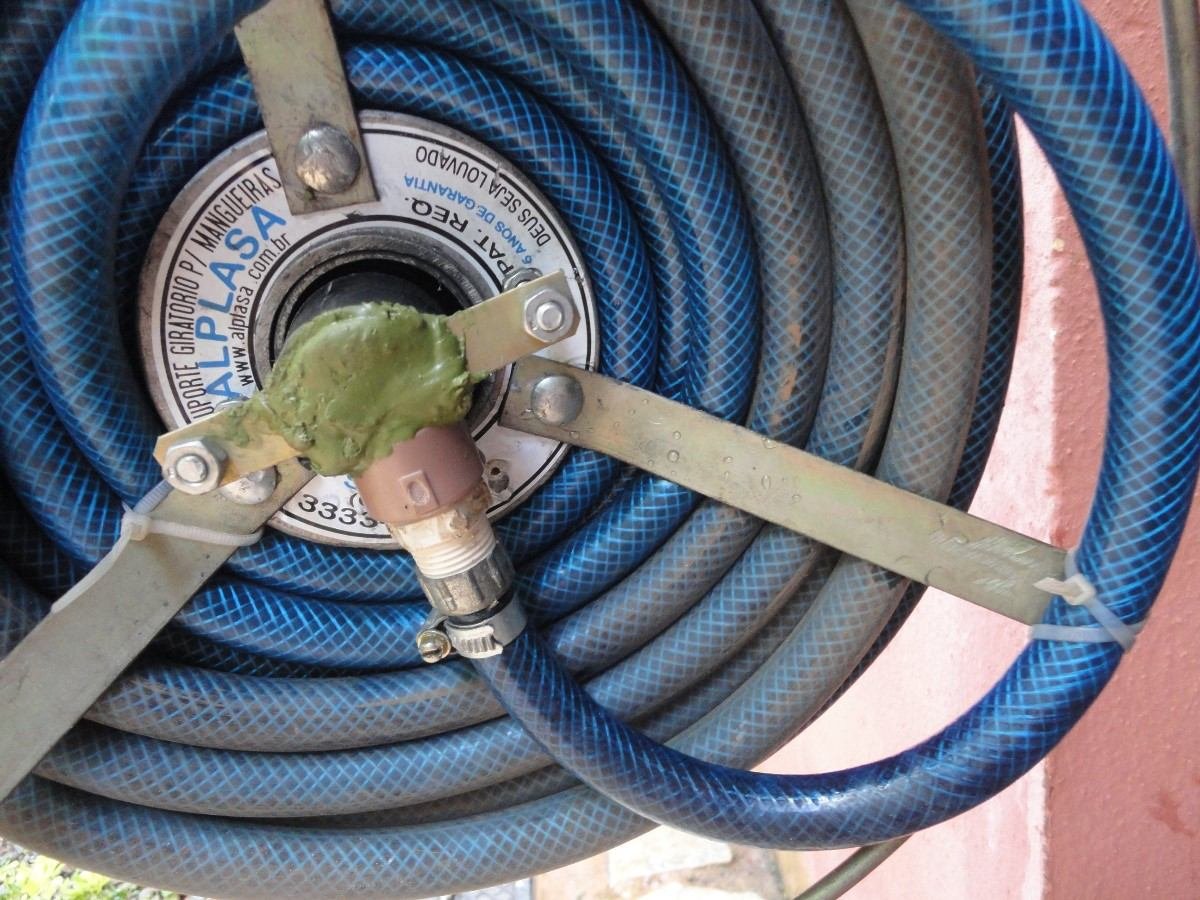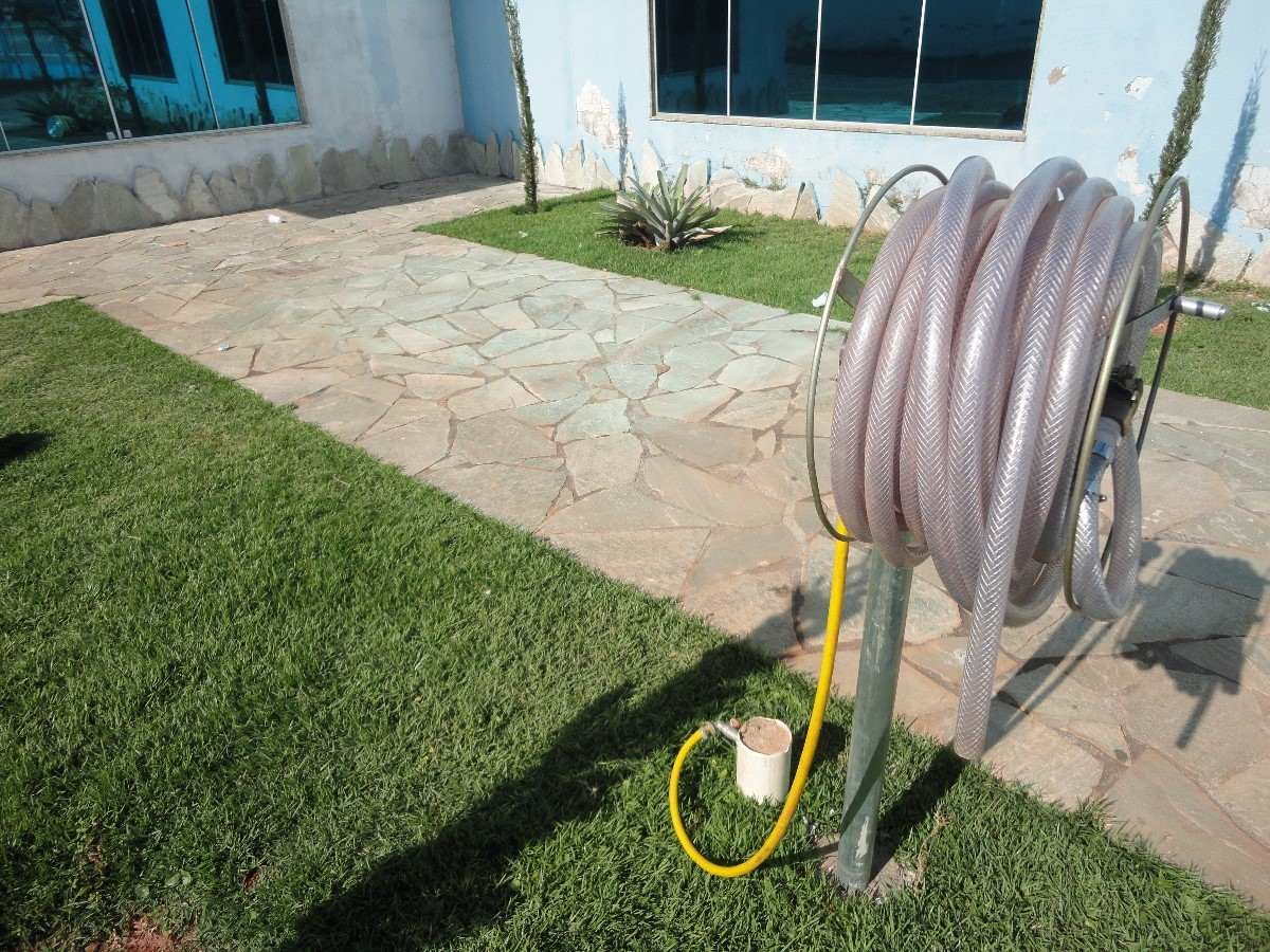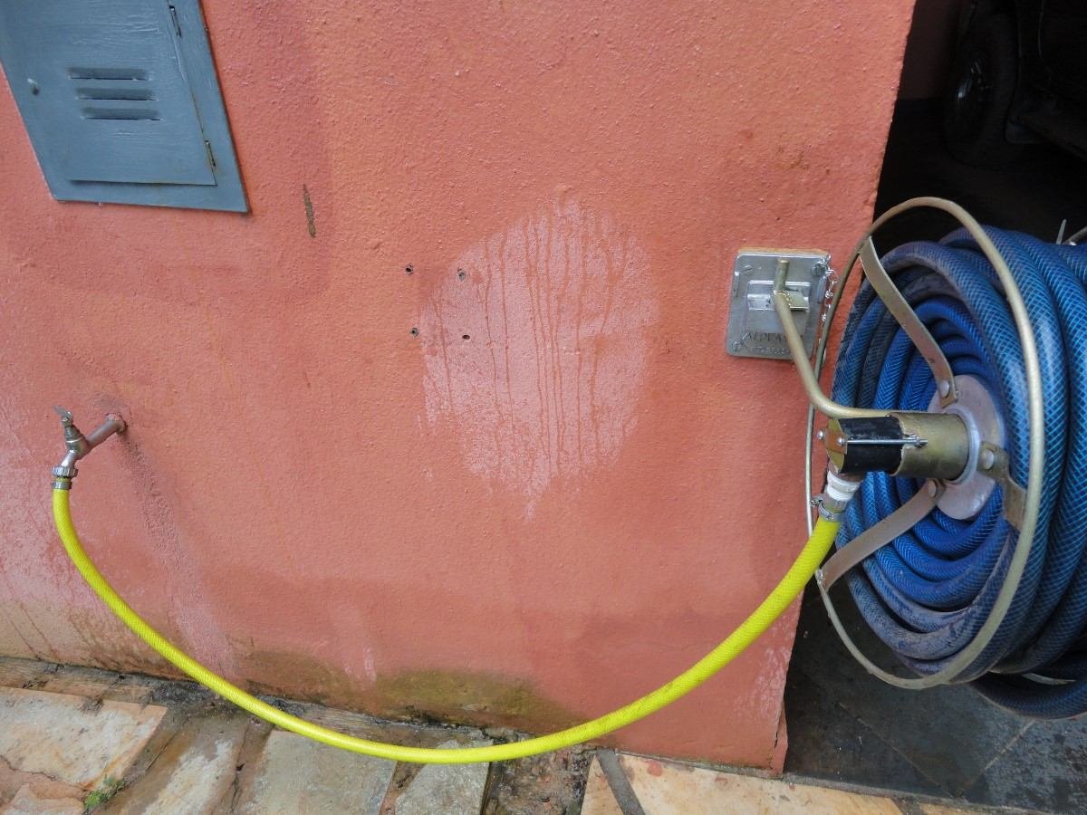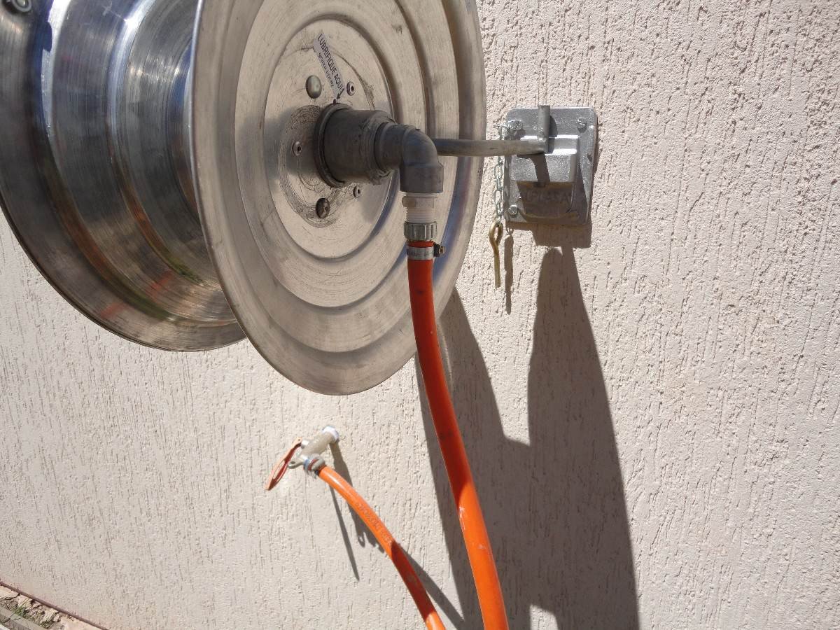 Sistema de passagem de água todo em PVC com 5 anos de garantia contra vazamentos. Organiza o local, conserva a mangueira e facilita o uso.