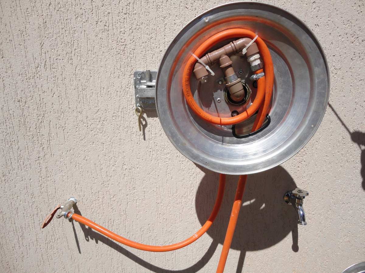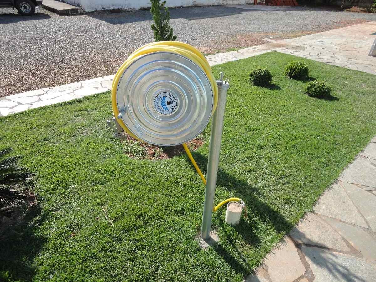 Para auxiliar na condução hidráulica, fabricamos carretéis para mangueiras, que giram com o registro aberto e sob pressão, únicos no Brasil com 5 anos de garantia contra vazamentos ou defeitos de fabricação.